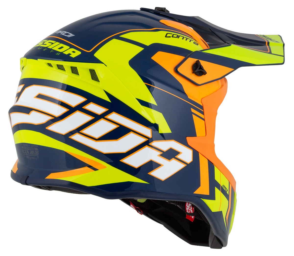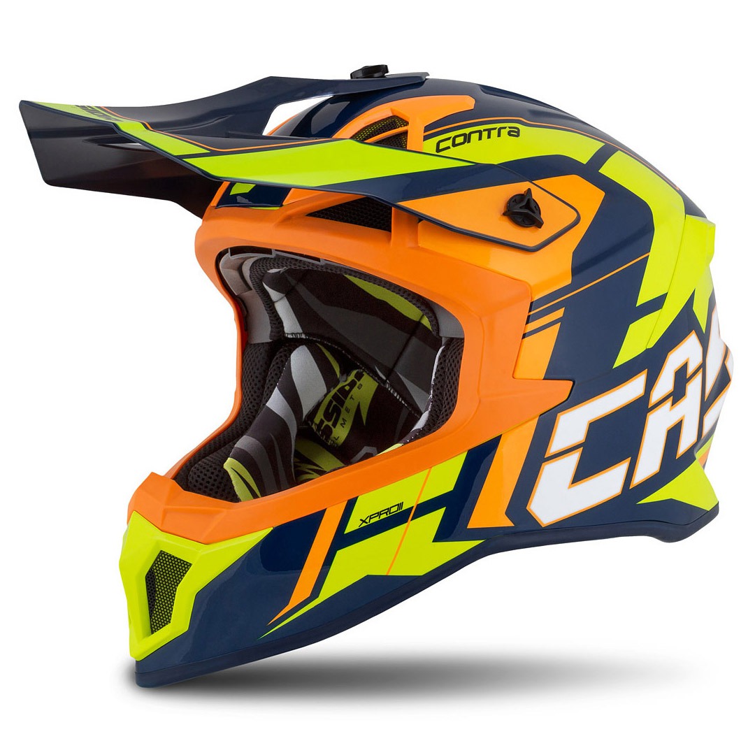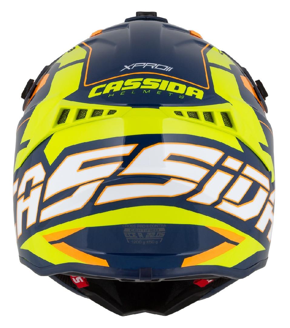 A rendkívül könnyű Cassida Pro II Contra motocross sisak tervezésénél nem csak a funkcionalitásra fektettek nagy hangsúlyt, hanem a stílusra, egyedi grafikára is. A praktikus állítható silten kívül, a bukósisak számos funkcionális tulajdonsággal rendelkezik, mint például a könnyű üvegszálas héjszerkezet, teljesen kivehető és mosható, légáteresztő párnázat és dupla D gyűrűs csat.