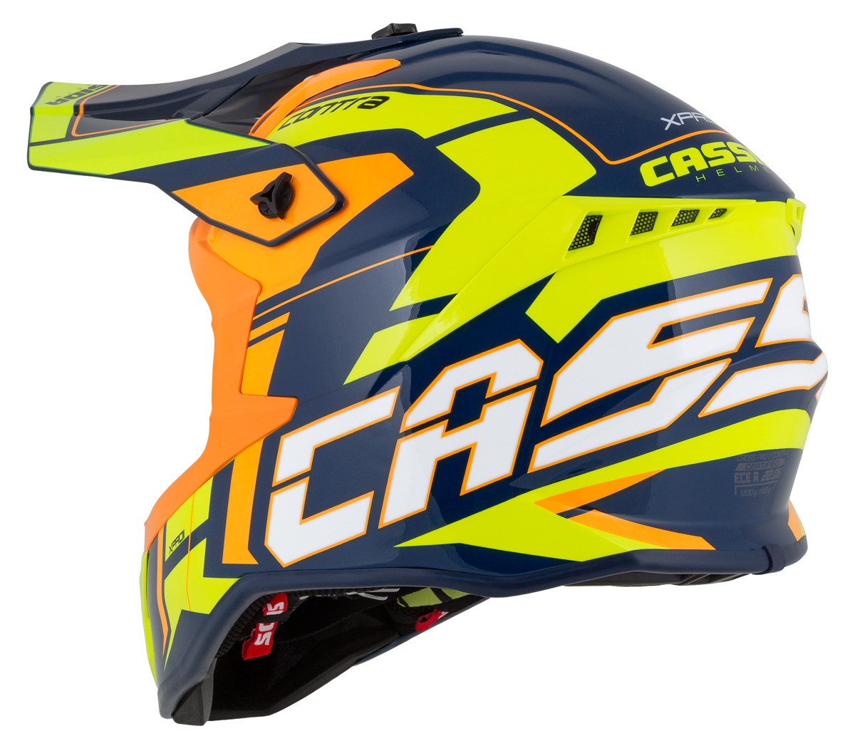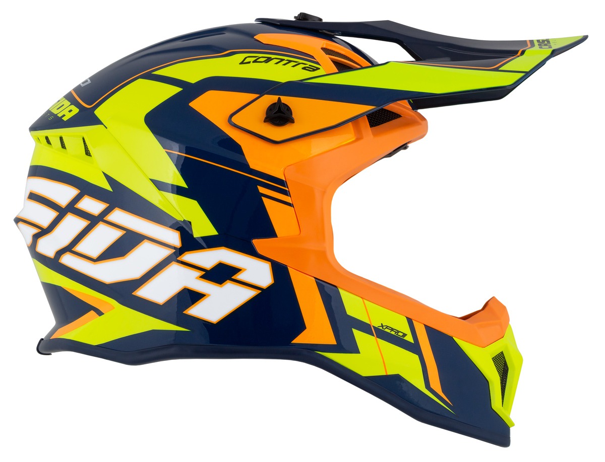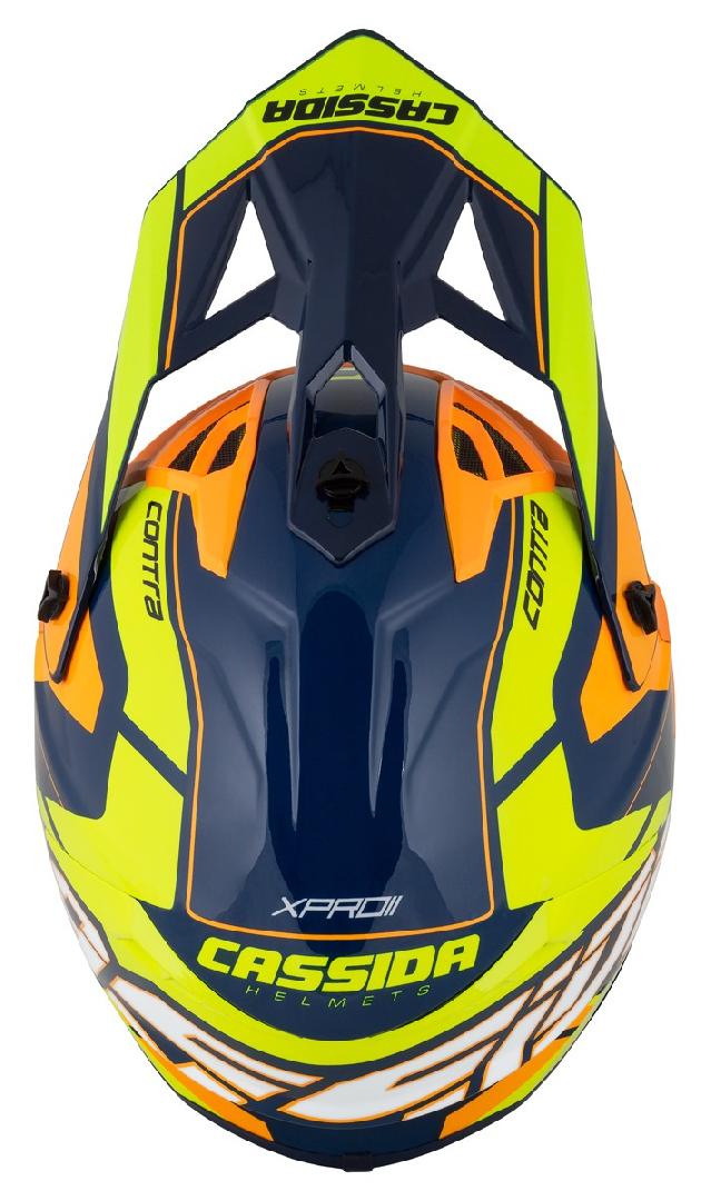 A rendkívül könnyű Cassida Pro II Contra motocross sisak tervezésénél nem csak a funkcionalitásra fektettek nagy hangsúlyt, hanem a stílusra, egyedi grafikára is. A praktikus állítható silten kívül, a bukósisak számos funkcionális tulajdonsággal rendelkezik, mint például a könnyű üvegszálas héjszerkezet, teljesen kivehető és mosható, légáteresztő párnázat és dupla D gyűrűs csat.