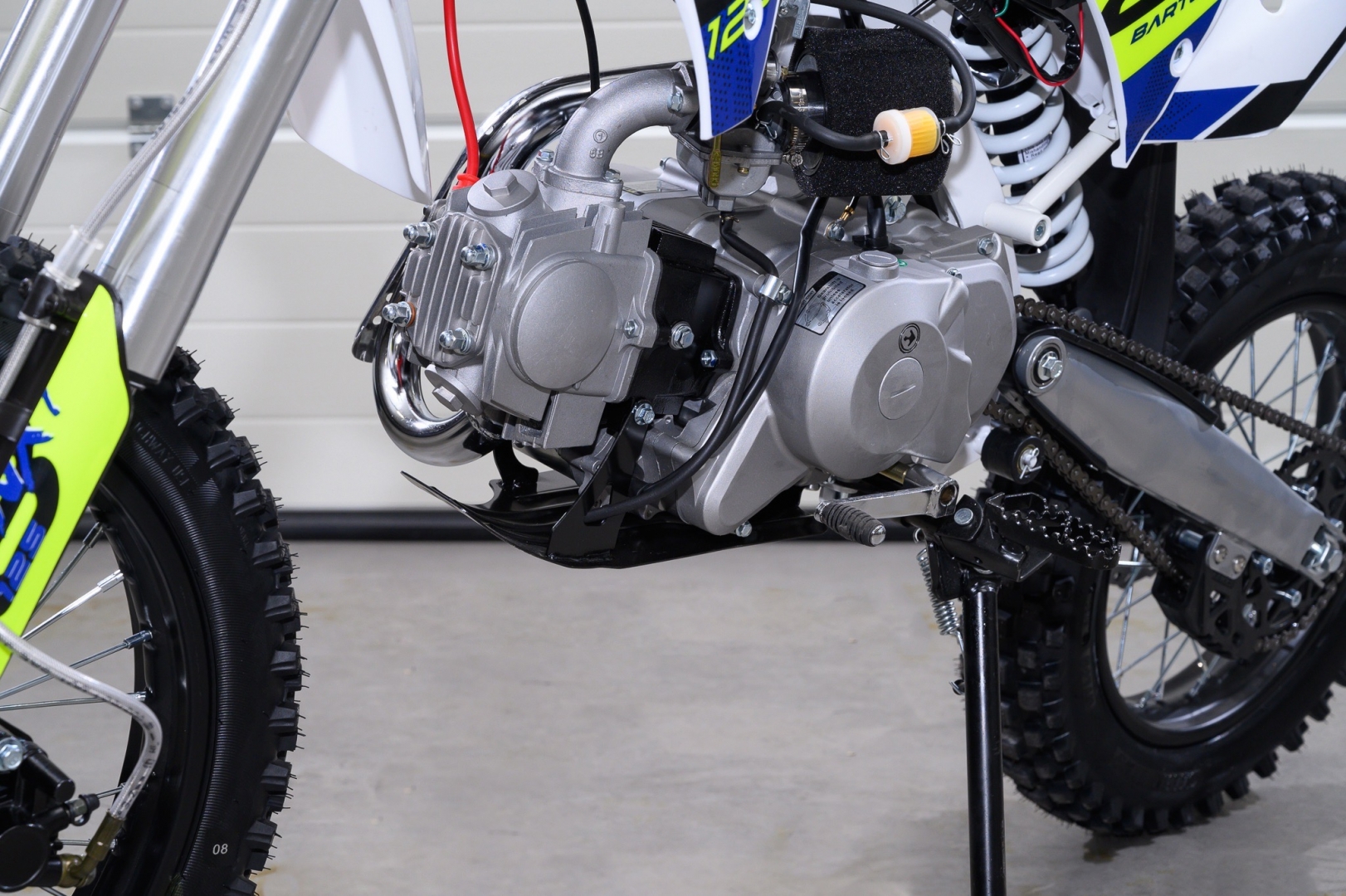 A megerősített lengőkaros szerkezet és a szivacsos sportlégszűrő egyenesen a professzionális cross motoroktól származik. A megerősített első villa tökéletesen kidolgozza a terep egyenetlenségeit. Az erőforrás egy egyhengeres, négyütemű, léghűtéses motor 8 LE teljesítménnyel, amely a négyfokozatú manuális váltóval együtt rengeteg vezetési élményt nyújt számunkra. Önindítóval és berugókarral is fel van szerelve. Az akkumulátor gyorsan hozzáférhető és könnyen eltávolítható helyen, az ülés alatt található. A 83 cm-es ülésmagasság tökéletes pozíciót nyújt a legtöbb motoros számára. A motor off-road gumijai jelentősen növelik a tapadást terepen.