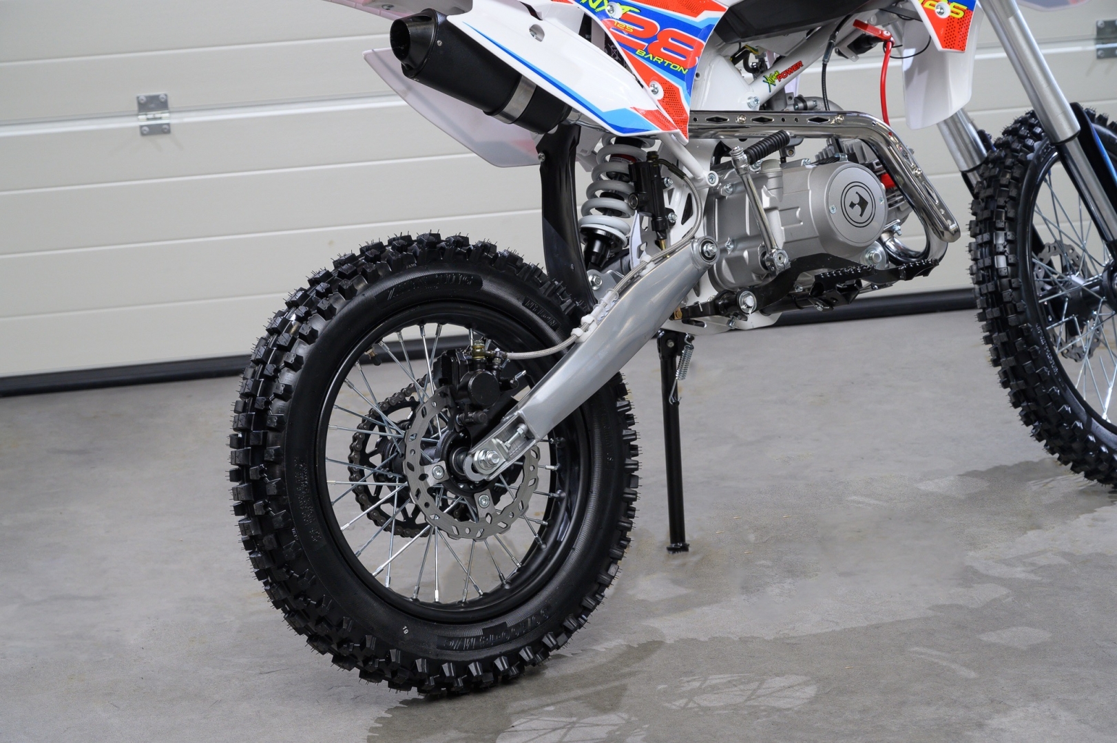 A megerősített lengőkaros szerkezet és a szivacsos sportlégszűrő egyenesen a professzionális cross motoroktól származik. A megerősített első villa tökéletesen kidolgozza a terep egyenetlenségeit. Az erőforrás egy egyhengeres, négyütemű, léghűtéses motor 8 LE teljesítménnyel, amely a négyfokozatú manuális váltóval együtt rengeteg vezetési élményt nyújt számunkra. Önindítóval és berugókarral is fel van szerelve. Az akkumulátor gyorsan hozzáférhető és könnyen eltávolítható helyen, az ülés alatt található. A 83 cm-es ülésmagasság tökéletes pozíciót nyújt a legtöbb motoros számára. A motor off-road gumijai jelentősen növelik a tapadást terepen.