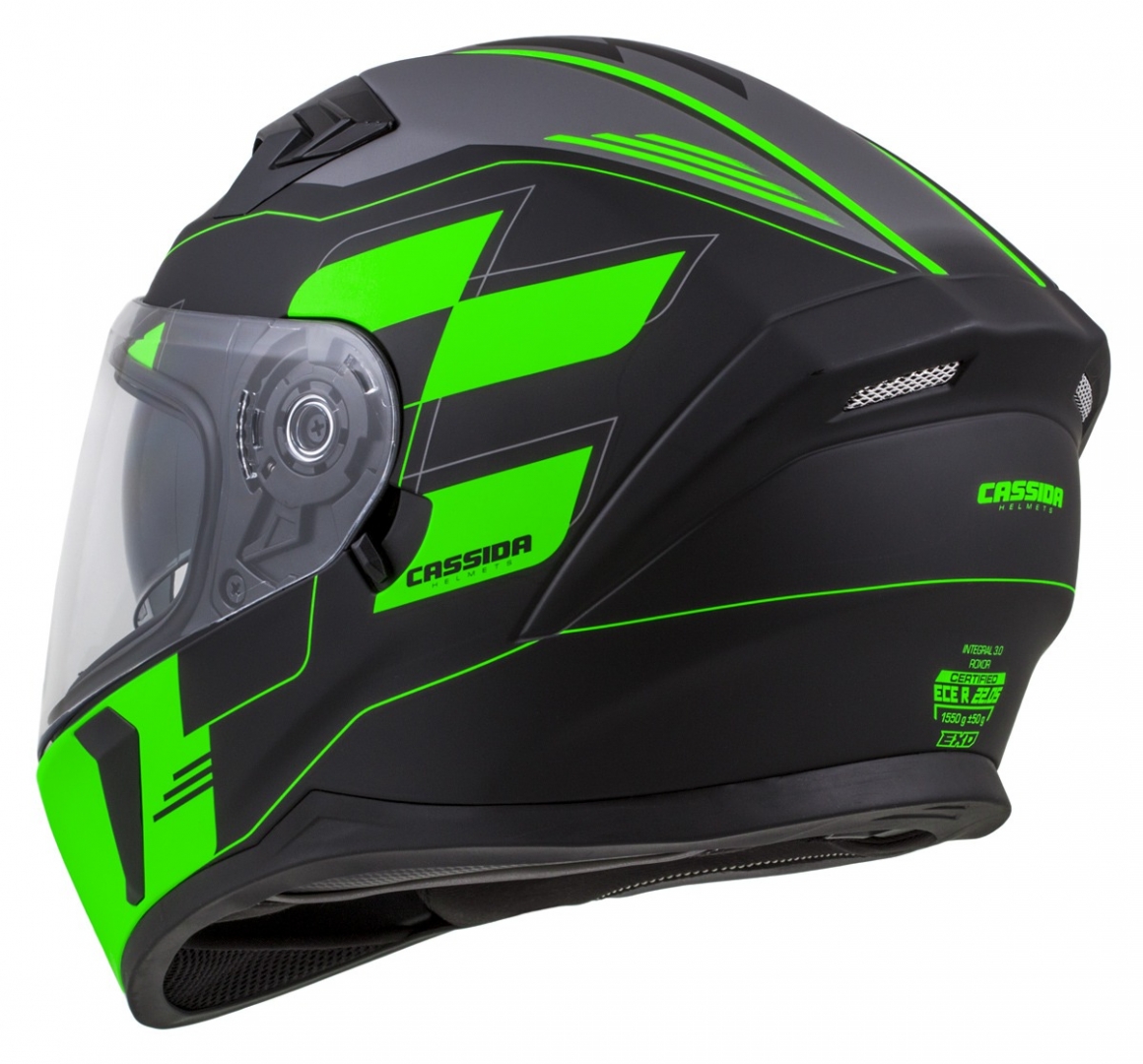 Polikarbonát héj, kényelmes belső kialakítás. Beépített napszemüveg. Sötét és átlátszó plexi. ECE 22.05 szabvány.