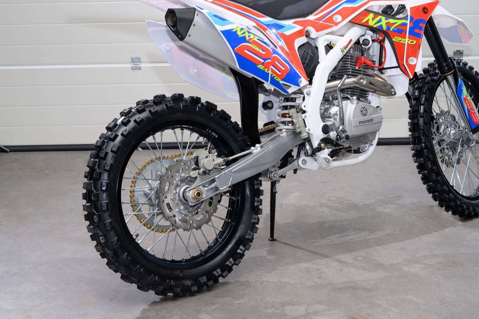 Az NXT 250 a Barton Motors kínálatának egyik legújabb darabja. Ez egy igazi cross motor, amely megfelel a kezdő és középhaladó motorosok igényeinek. Az erőforrás egy egyhengeres, négyütemű, léghűtéses motor 16 LE teljesítménnyel és ötfokozatú manuális váltóval. A LED-es első fényszórónak köszönhetően sötétben is jól láthatunk terepen. A kifinomult váz, a merev felfüggesztés alumínium lengőkarokkal és a kényelmes üléspozíció segít abban, hogy élvezd az akadályokkal tarkított terepen való motorozást.. A kerekek mérete 21/18", a hasmagasság eléri a 330 mm-t, az egész súlya pedig mindössze 110 kilogramm. A kezdő motorosok is értékelni fogják a nagy agilitást és a kézreállóságot minden sebességi fokozatban.