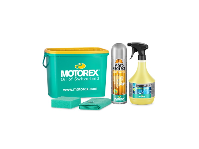 Motormosó készlet vödörrel. Tartalma: 1 Moto Clean, 1 Moto Protect spray, 1 szivacs, 1 törlőkendő.