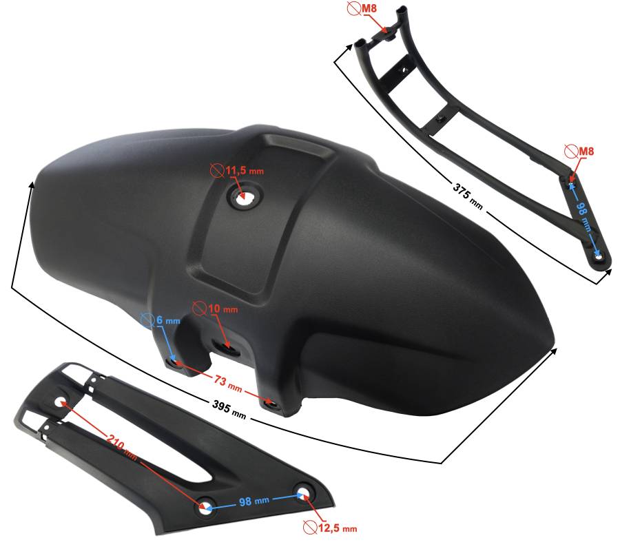 Rögzítési furatközép távolság: 73/98/210 mm