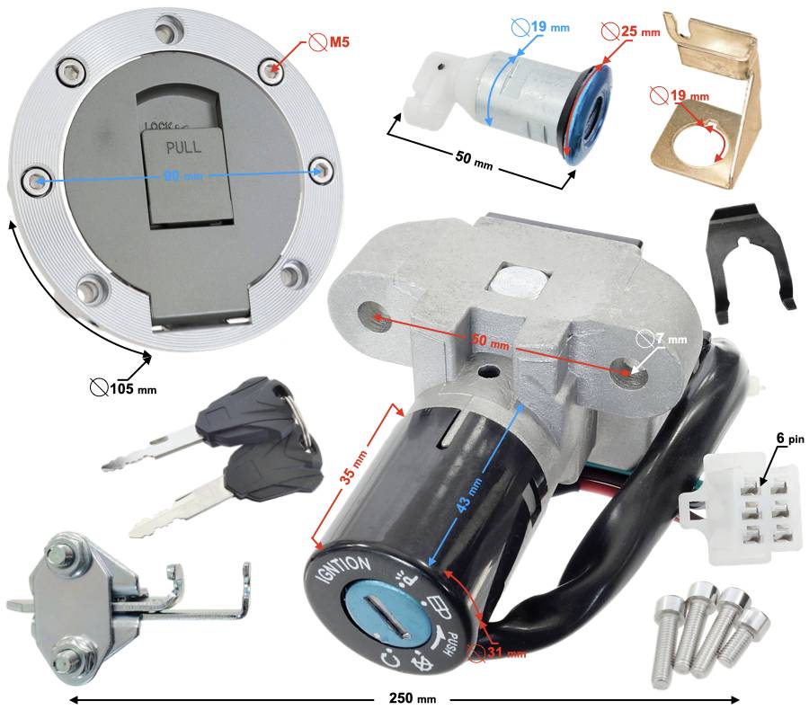 Gyújtáskapcsoló furat átmérő: 7 mm