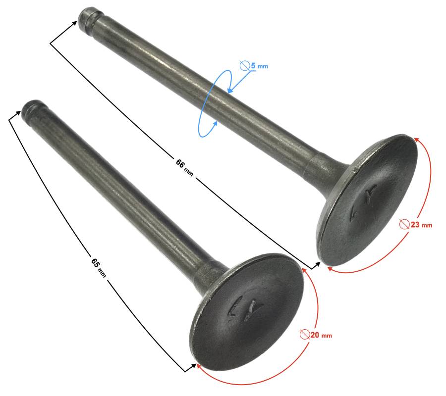 - Szelepszár átmérő: 5 mm