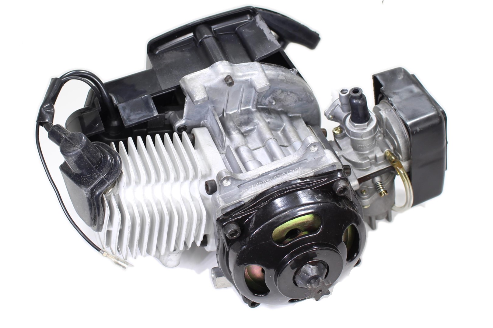 50 ccm-es, kétütemű, léghűtéses motorblokk.