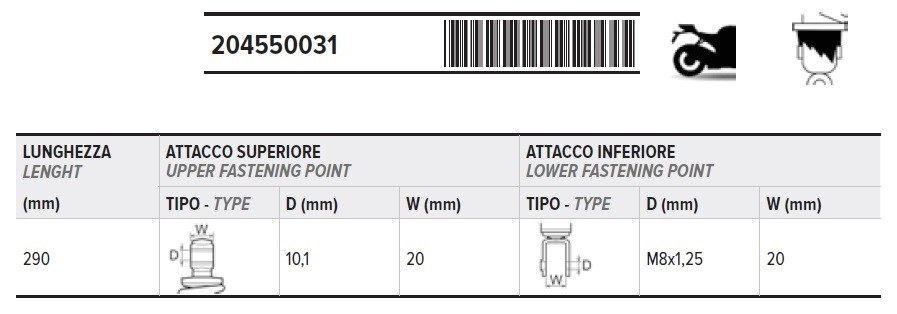 Teleszkóp hátsó Aprilia SR/ Rally/ Scarabeo, 50ccm