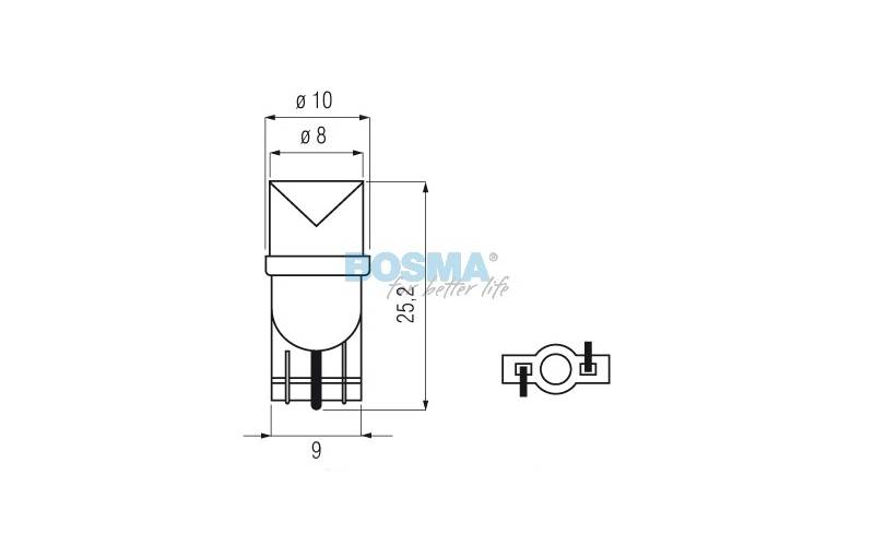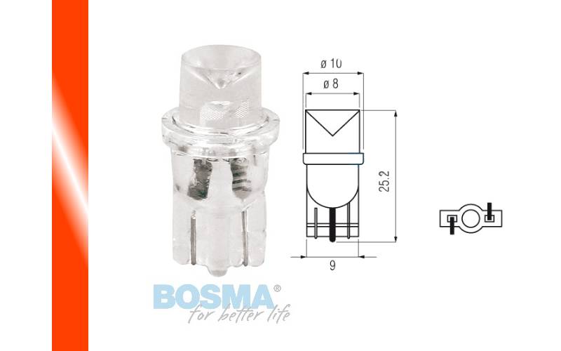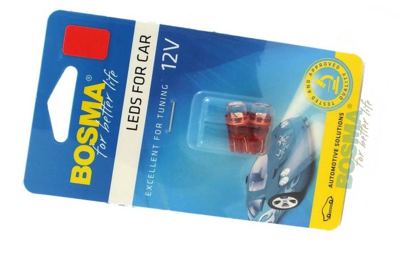 LED izzó 12V, T10, piros 1 ledes