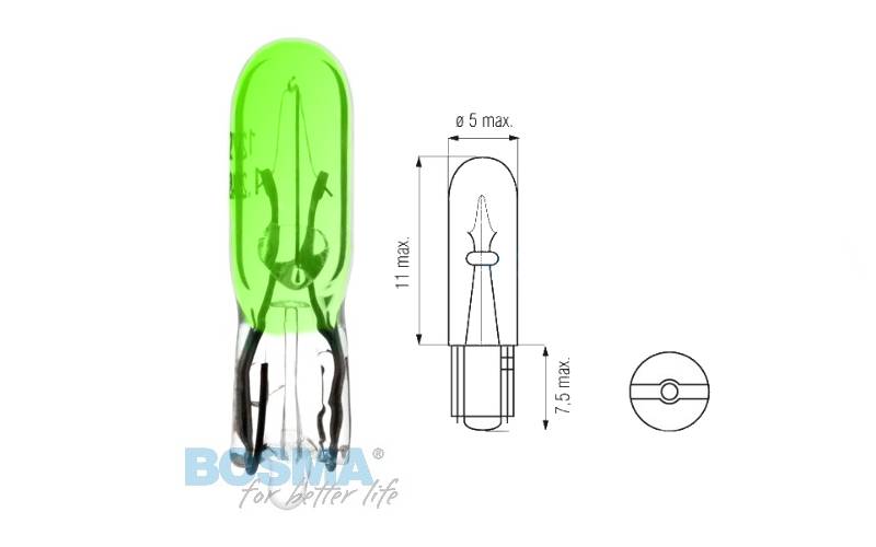 Izzó 12V, 1, 2W, T5 zöld