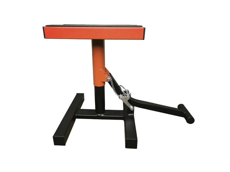 Robosztus acél konstrukció. Gumival borított felső rész. Csapszeges rögzítés. 28-40 cm között állítható magasság. Teherbírás: 150 kg.