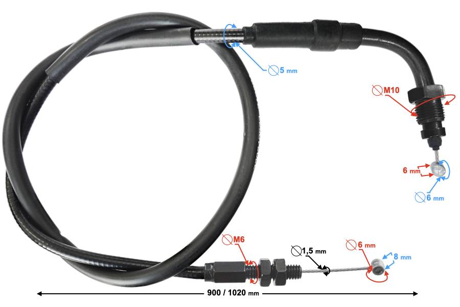 Bowdenvég hosszúság: 6/8 mm