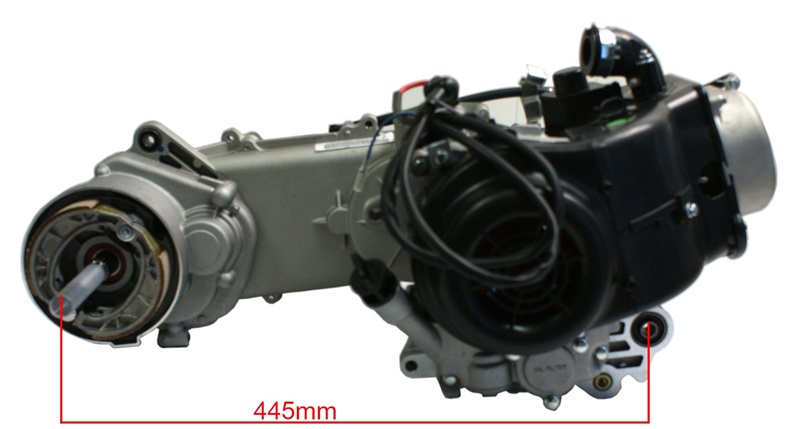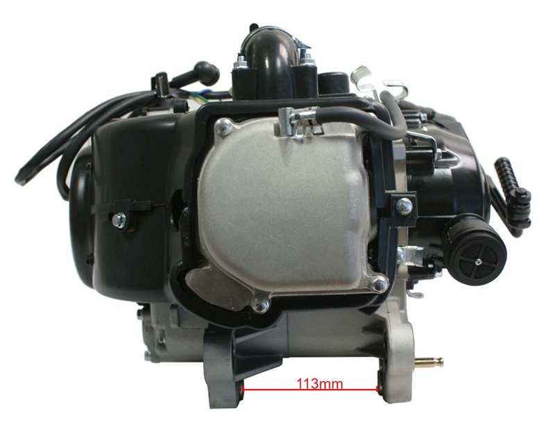 80 ccm-es, négyütemű, léghűtéses motorblokk, automata váltóval.