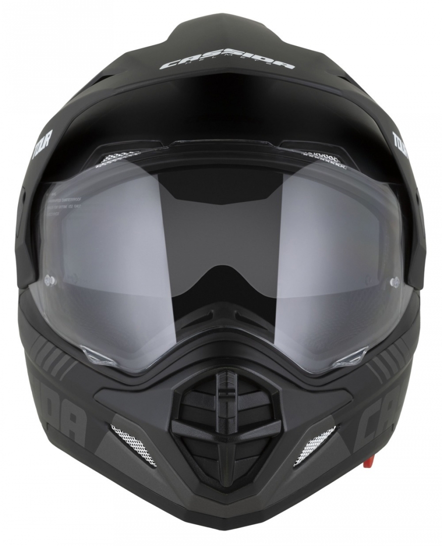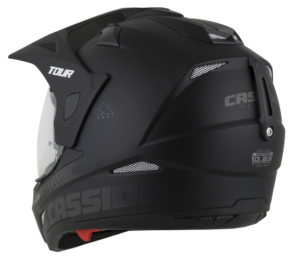 A Cassida Tour 2.0 Dual Cross bukósisak a védelem és kényelem új szintjét kínálja a motorosoknak. Az ABS műanyag külső héj és az EPS ütéselnyelő belső réteg maximális biztonságot garantál, míg a felnyitható plexi, a beépített napszemüveg és a Pinlock előkészítés a kényelem és funkcionalitás továbbfejlesztett szintjét biztosítják.