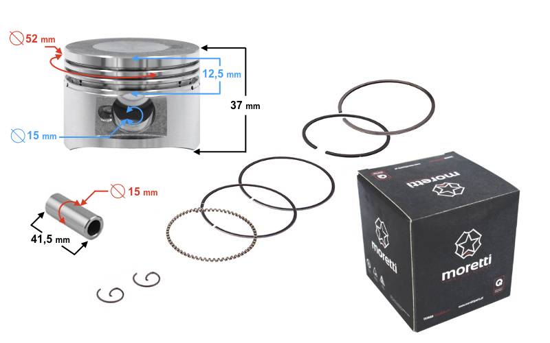 Dugattyú szett Quad 110-125ccm, 52.4mm 15-ös csapszeg