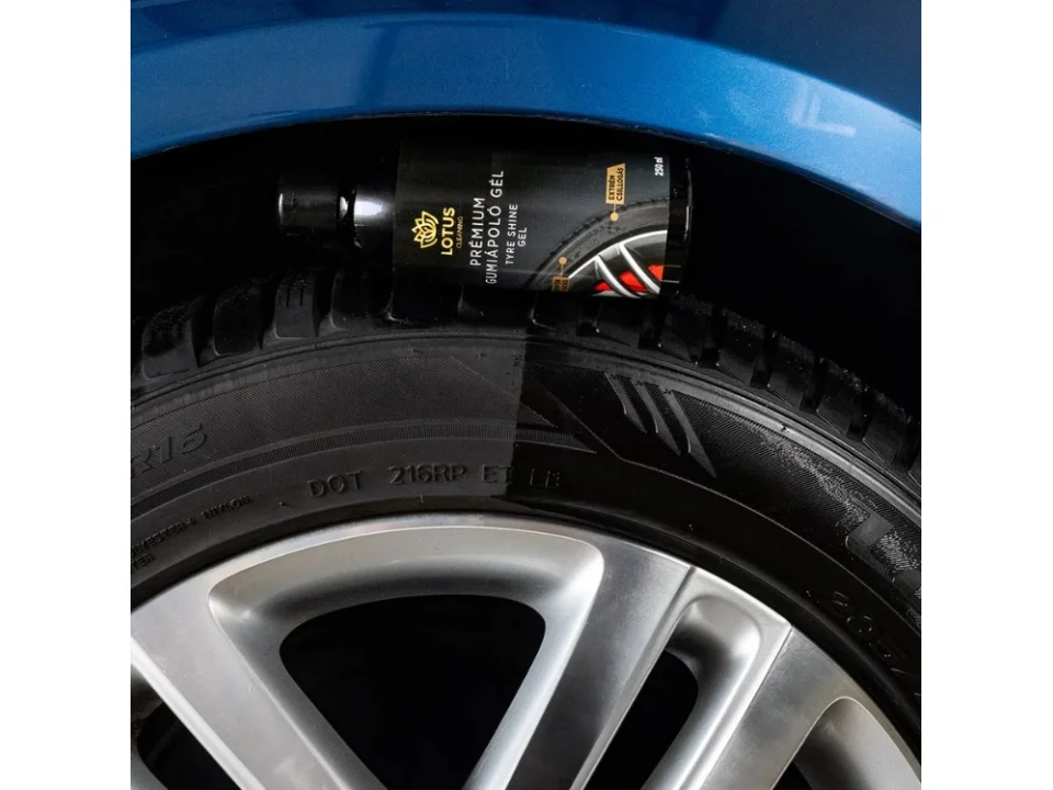 A Lotus Cleaning Prémium Gumiápoló Gél ideális abroncsok, gumi, külső műanyag felületek ápolására és védelmére. Ápolja a felületeket és csillogást hagy maga után. A kezelt felületet megvédi a fékportól, a zsíros és egyéb környezeti szennyeződésektől, a kiszáradástól és kirepedezéstől. Tartós, mély csillogást biztosít hetekig, az abroncsok visszanyerik tiszta, új kinézetüket.