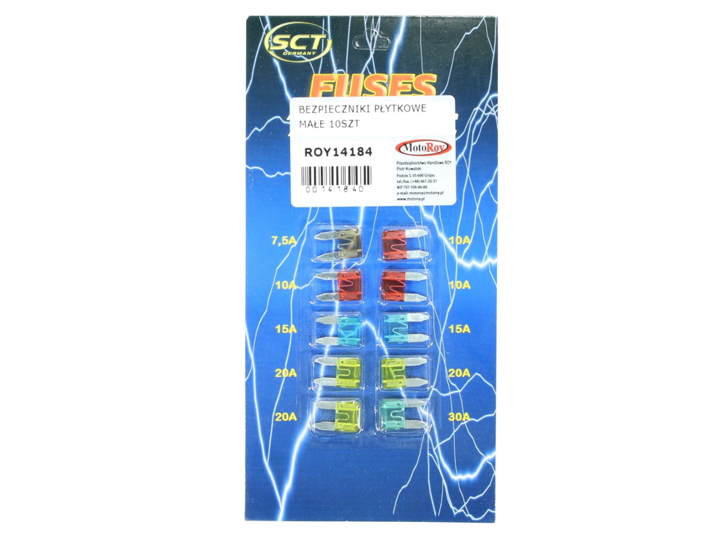 A készlet tartalmaz 10 db mini méretű (12mm) késes biztosítékot.